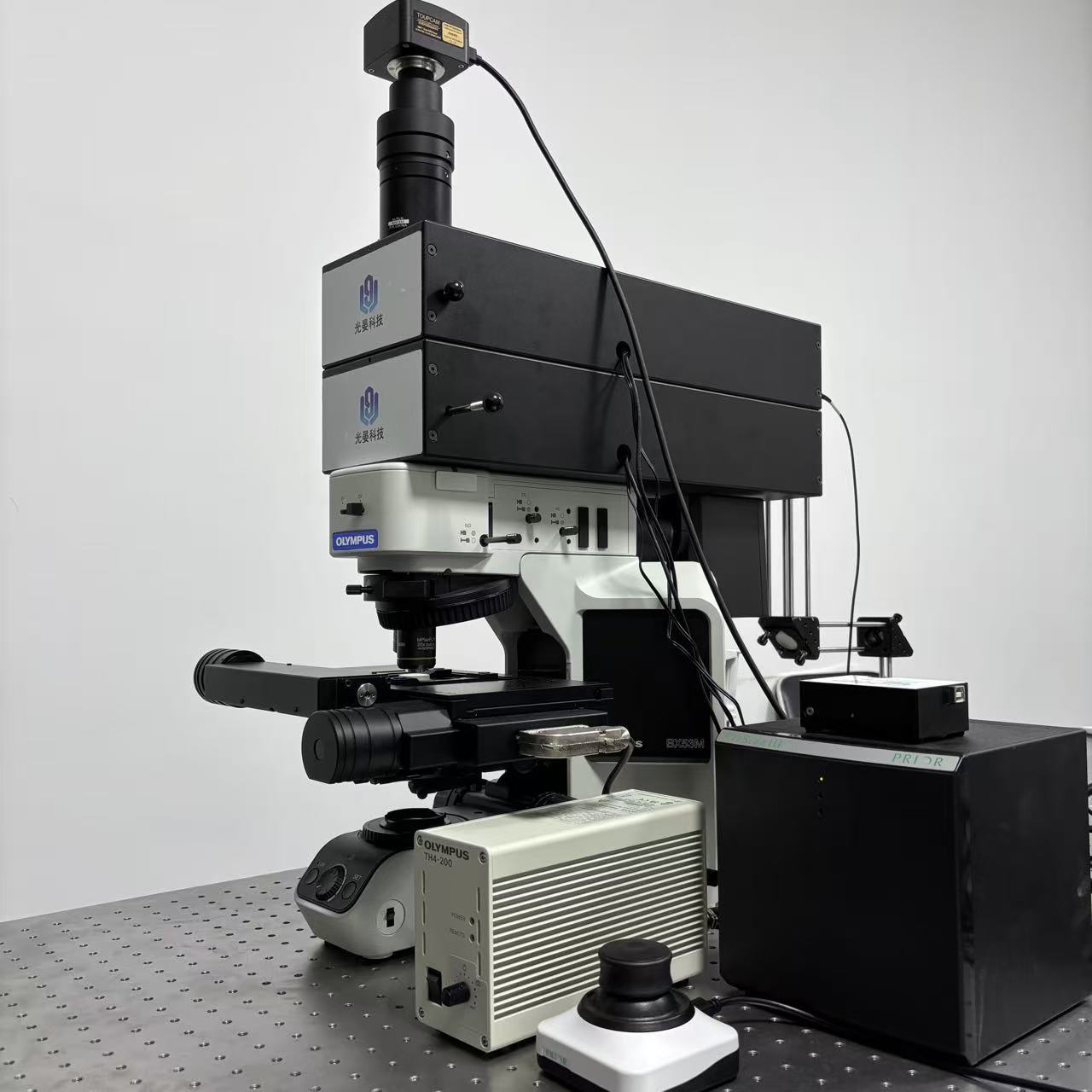 5) Laser incidence module: the resolution of incident light with point-focusing is 1um@0.9NA Objective; The range of wide-field excitation is 100um @0.9NA Objective; Point-focusing and wide-field excitation can be switched quickly, and multiple channels can be used for coupling incident laser; The angle repetition accuracy of the electric rotating motor is 0.1 degree/step, the angle range is 360 degrees, and the optical aperture is 20mm (polarization module is optional).